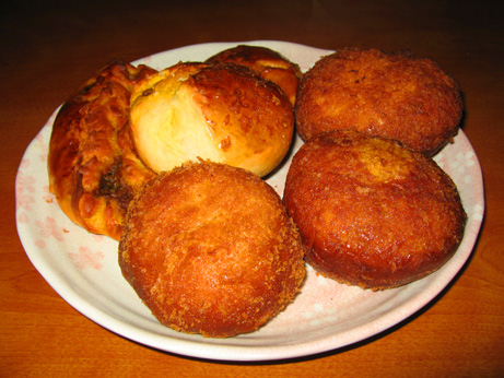 ピロシキの方を卵とパン粉で覆って油で揚げる。