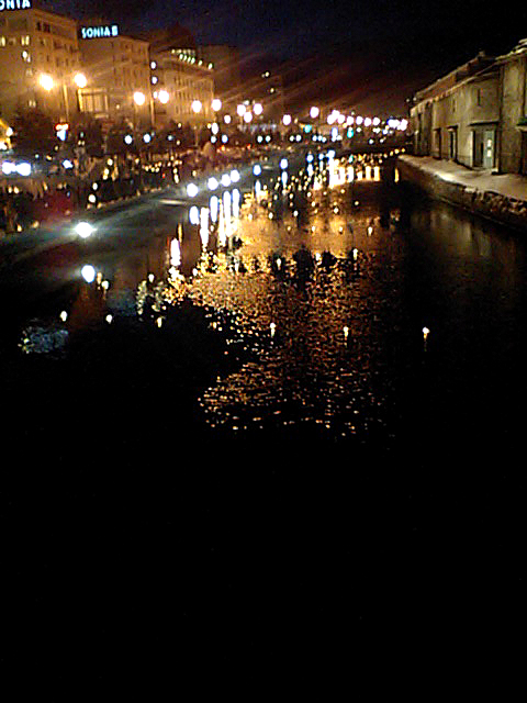 運河の水面にもあかりの灯った浮き玉が浮かべられていて、なかなか美しい。