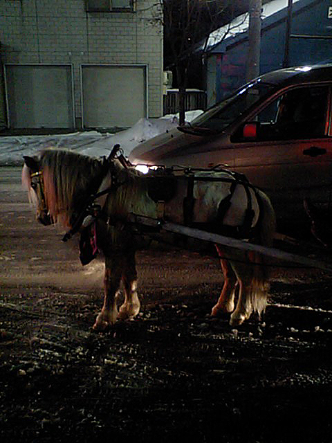 道行く子供たちが「馬が寒くてかわいそう」