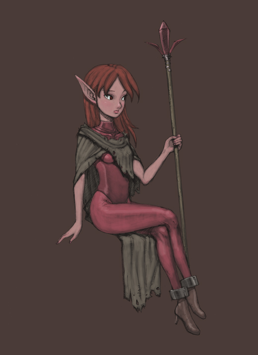 ので、上の絵のようにピンクのピチピチのやつに、薄汚れた魔道士って感じでマントを巻いてでっち上げた。