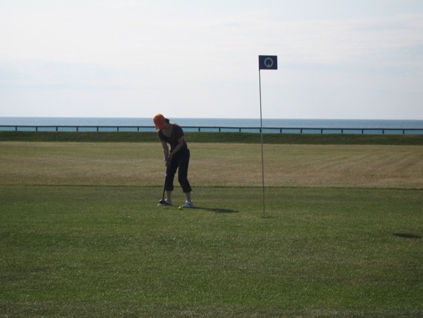 驚くほど海沿いのコース(芝は潮風にさらされ枯れ放題)。